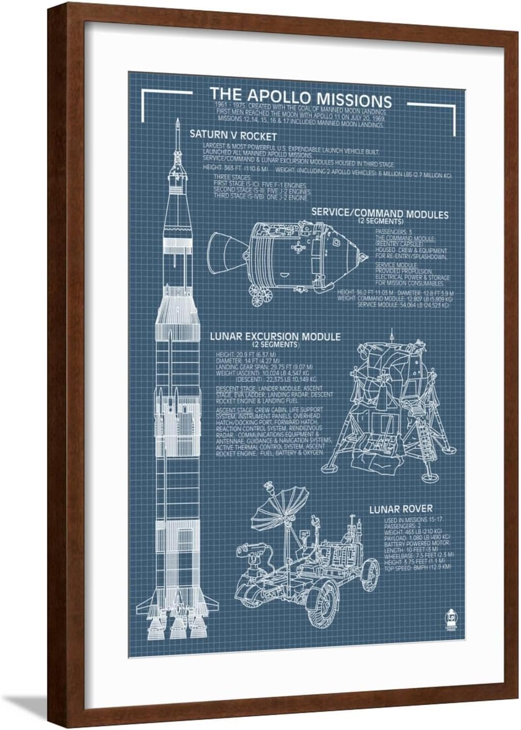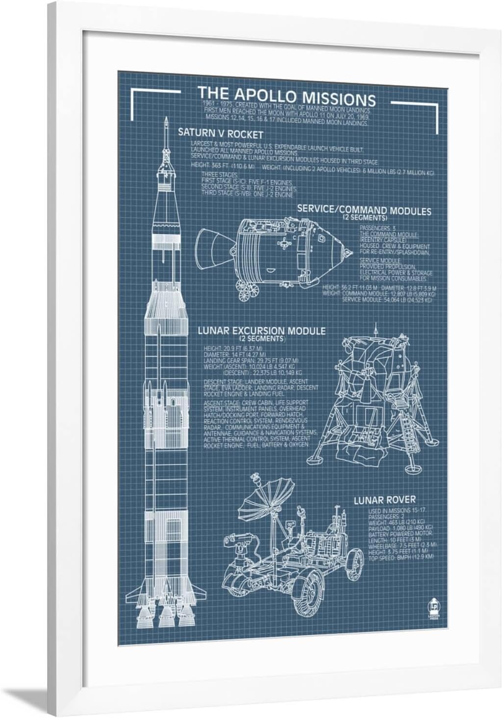 Introducing the Art.com Wall Art Print Apollo Missions - Blueprint Poster by Lantern Press, 24" x 36", an exquisite piece of artwork that brings a touch of elegance to any room. Our Art Prints are printed with meticulous attention to detail, each print captures sharp, vibrant images with exceptional color accuracy. With various sizes available, you have the freedom to select the perfect dimensions to suit your space. Whether you prefer a minimalist aesthetic or a bold statement, these unframed, famed and canvases prints offer versatility, allowing you to customize your display according to your unique home decor. Elevate your walls with the sophistication and beauty of Art.com's art prints, creating an exquisite addition to your wall art collection.