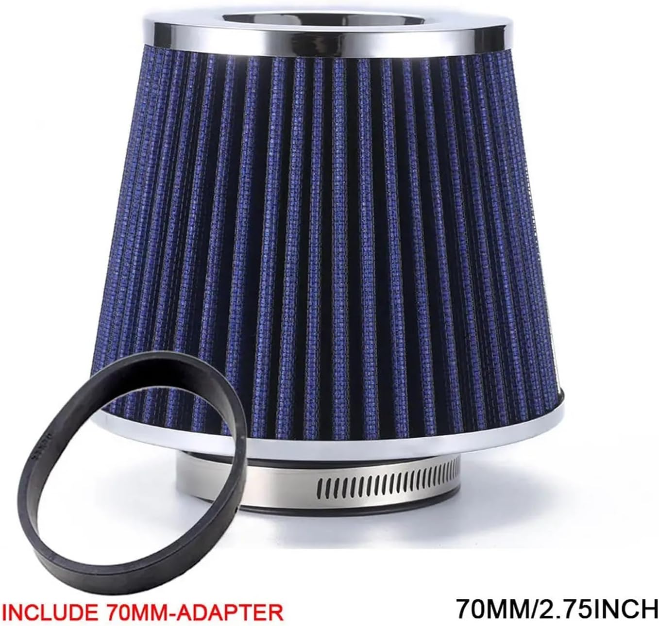 Air Cleaner MountingSpecification:1. Material: Aluminum and Fabric2. Color: Black, Red, Blue, Silver3. Higth: approx. 60mm4. Width: approx. 50mm5. Neck Size: 65mm/70mm/76mm, 2.5inch/2.75inch/3.0inch6. Weight: approx. 650gPlacement on Vehicle : Air Intake PipeOther Part Number : Cold Air IntakeSpecial Features : High PowerItem Weight : 0.65Item Height : 150mmItem Width : 160mmItem Length : 160mmManufacturer Part Number : Air FilterMaterial : Aluminum and FabricOrigin : Mainland China