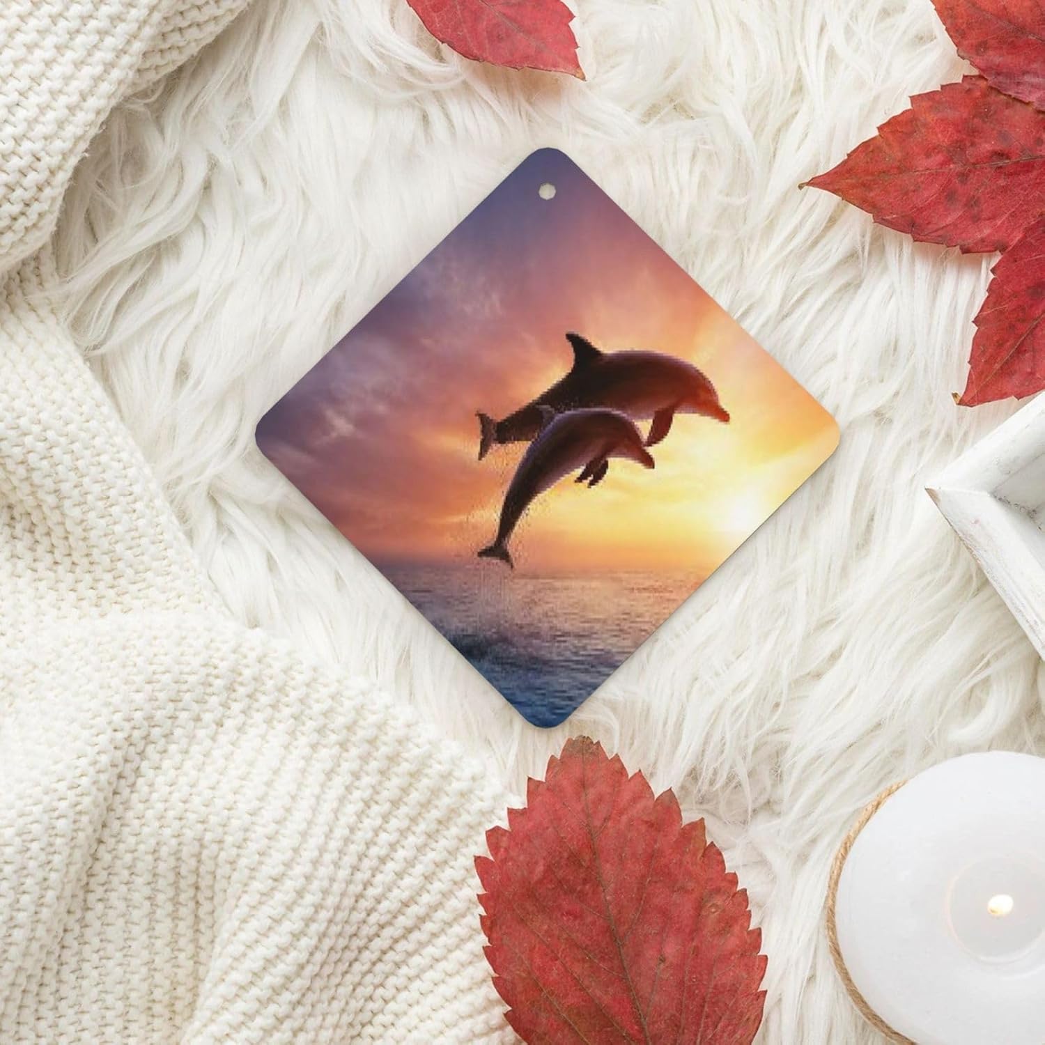 unobstructed vision: this Dolphins at Sunset rearview mirror scented fresheners doesn't obstruct your vision while driving, ensuring a safe and comfortable journey every time.easy hang: we've included a convenient rope for hanging, making it super easy to attach this christmas air freshener wherever you prefer. No fuss, no mess - just hang and enjoy the fragrance.incredible package deal: this rearview mirror pendant aromatherapy tablets package includes 6 pieces in 6 captivating designs and 1 refreshing scents (lavender). Experience a variety of delightful fragrances that will keep your surroundings smelling wonderful throughout the day.environmental protection: the car air fresheners for women smell can last for about 1-2 weeks. When the smell fades, you can add your favorite perfume. Continue to use, reusable6 pcs included: you will receive 5 individual shoe cabinet fresheners, each in its own package; enjoy consistent scents for nearly a year, or share them with your friends or families