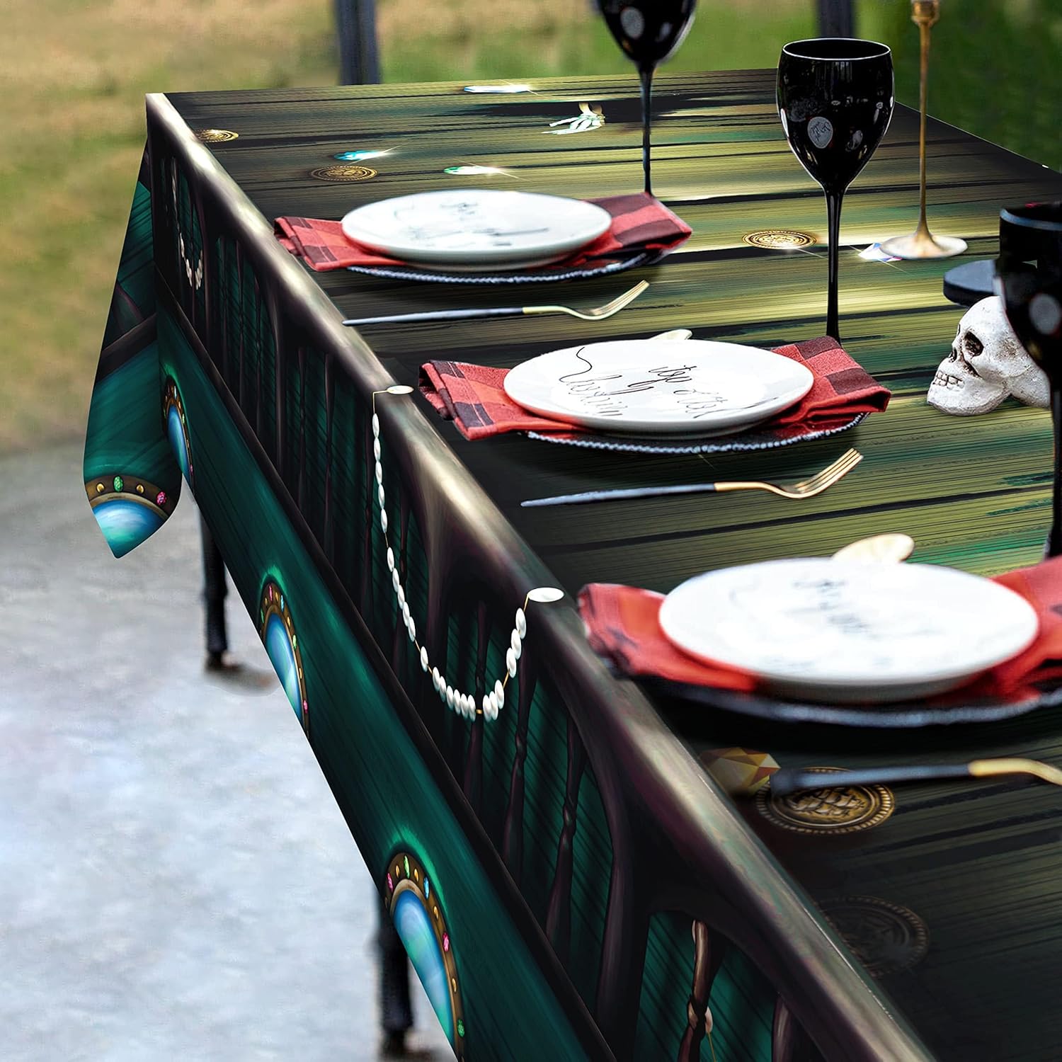 Transform your Halloween celebration into a captivating pirate adventure with the Cheerland Skull Pirate Boardwalk Tablecloth and Gold Coin Paper Plate set, a dynamic duo designed to immerse your guests in the thrill of hidden treasures and daring escapades. Pirate Treasure Hunt Theme: Embark on a swashbuckling journey with this enchanting set, featuring the Skull Pirate Boardwalk Tablecloth and Gold Coin Paper Plates that embody the spirit of a high-seas treasure hunt. Each item is intricately crafted to transport your guests to a world of mystery and excitement, creating an immersive atmosphere that will make your pirate-themed party a memorable and thrilling experience. Seafaring Skull Pirate Boardwalk Tablecloth: Set the stage for adventure with the Skull Pirate Boardwalk Tablecloth, a striking centerpiece for your pirate-themed feast. This tablecloth features a captivating boardwalk design adorned with skull motifs and pirate elements, creating a backdrop that evokes the rugged charm of a pirate hideout and sets the scene for a night of plunder and revelry. Gold Coin Paper Plates: Dine in pirate style with the Gold Coin Paper Plates, shimmering treasures inspired by the legendary riches of pirate lore. These plates are embellished with intricate gold coin designs, adding a touch of opulence and mystery to your culinary offerings as you and your guests indulge in a feast fit for buccaneers and scallywags.
