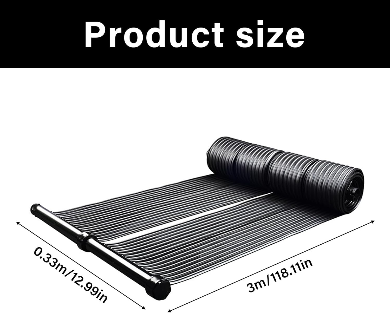 Features: Achieve great pool warmth with our solar panel heaters feature a tube grids design for maximums sunlight absorption. The panel is rolling up and easy to carry, for outdoor activity such as hiking and camping. Make from EPDM rubber, maximizes heat absorption, optimizing solar energy for efficient heating. connecting our pool heaters to your on ground pool easily by firmly attaching pool water heaters to tube and connecting your pool pumps with the provided accessories. Regularly pool heaters to maximizes sunlight absorption. Specifications: Component: EPDM rubber Width: about 0.33m/12.99inch Length: about 3.0m/118.11inch Note: Please allow 1-2cm errors due to manual measurement, make surely that you not mind before order. Due to difference between different monitors, the picture may not reflect the actual color. Package includes: 1pc Swimming Pool heaters