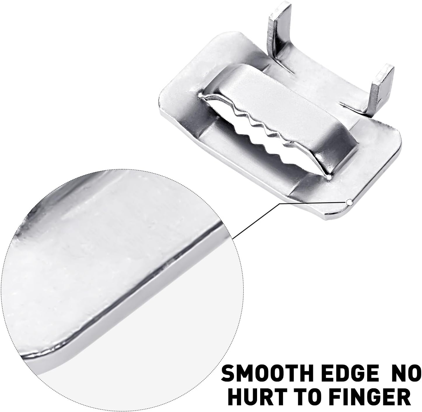 Specifications Package Includes: 100pcs Ear-Lokt banding clip Material: 304 Stainless Steel Width: 3/4 inch banding clips (19.05mm) Application size 3/4" strapping buckles for use with 3/4 inch wide strapping or stainless steel strapping. Widely use The buckle packaging with earlobes can be formed over any material strapping to offer firm strapping, suitable for heavy-duty applications such as pipes,timbers,cable. We do pay more cost to have 100% quality inspection for each product, because we know each product means each customer.