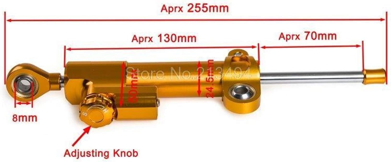 -Condition:100%Brand New-Material:6063-T6 Billet Aluminum-CNC-machined from lightweight aircraft-grade aluminum-Increase the corners and -speed stability-Make you more safely driving-Damper has an Active/Speed-Sensitive Damping System-Damping can be adjusted in 22 positions-Anodized surface finishing-Kit includes damper and mounting bracket-No modification needed-Easy to install,no instruction-Qty:1x Set (Steering Damper and Mounting Bracket)