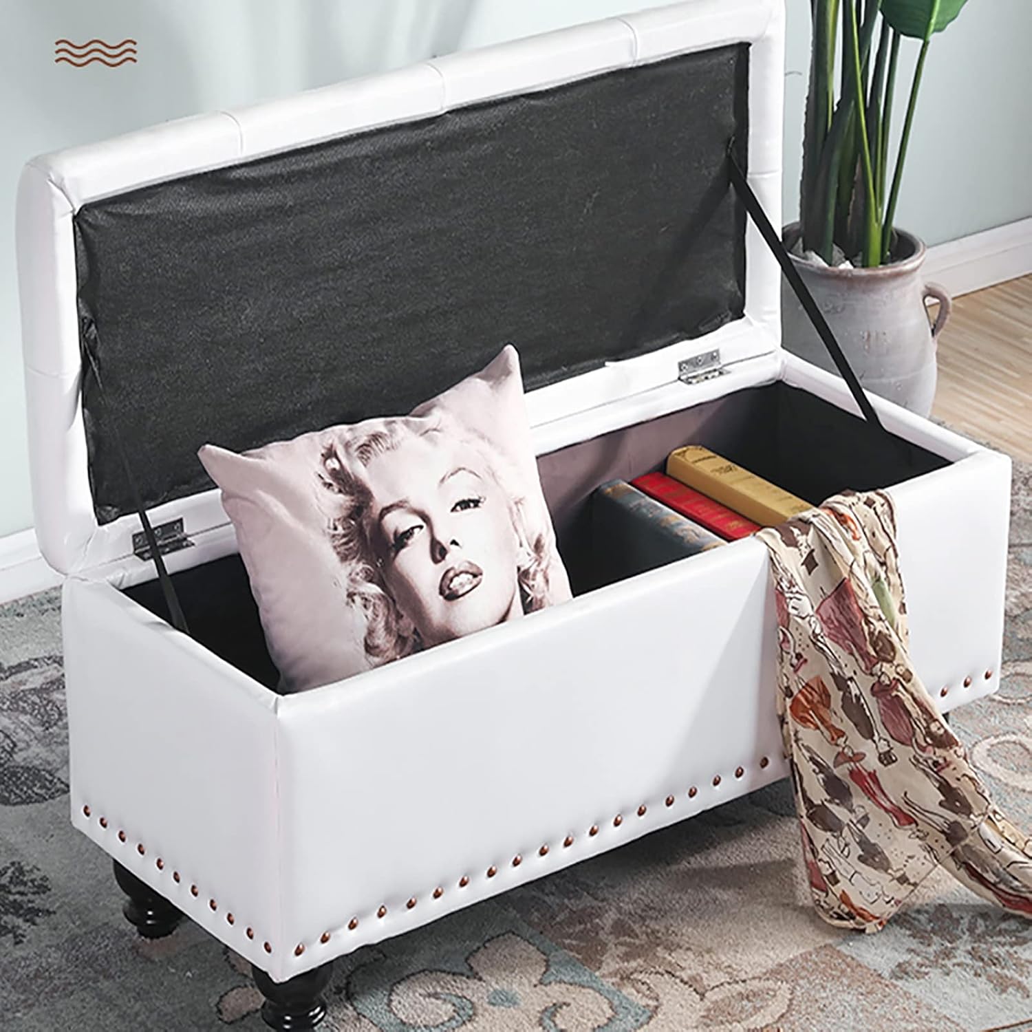 This storage ottoman is finely crafted with premium faux leather and high-quality MDF, the construction erected after assembly is sturdy and solid, the decorative appearance matches your home decor and furniture. ✎It can be used as: Storage box/trunk Little things finally have a place, whether blankets, pillows, clothes or remote controls, books... a simple solution to organize your work and home environment. Entryway shoe bench It is stable like a bench that can be placed at the entrance or in the closet. You can sit on it to put on or take off your shoes. Footrest Tired after whole days of work? Here comes a nice place to rest your feet while sitting on the couch. Multiple choices: We have a variety of folding stools in size and color, just search for stools to find more. Specifications: ✎- Upholstery material: faux leather. ✎ Seat filling material: high resilience sponge. Construction material: CARB P2 medium density fiberboard. Package Content: - 1 x Folding Storage Stool