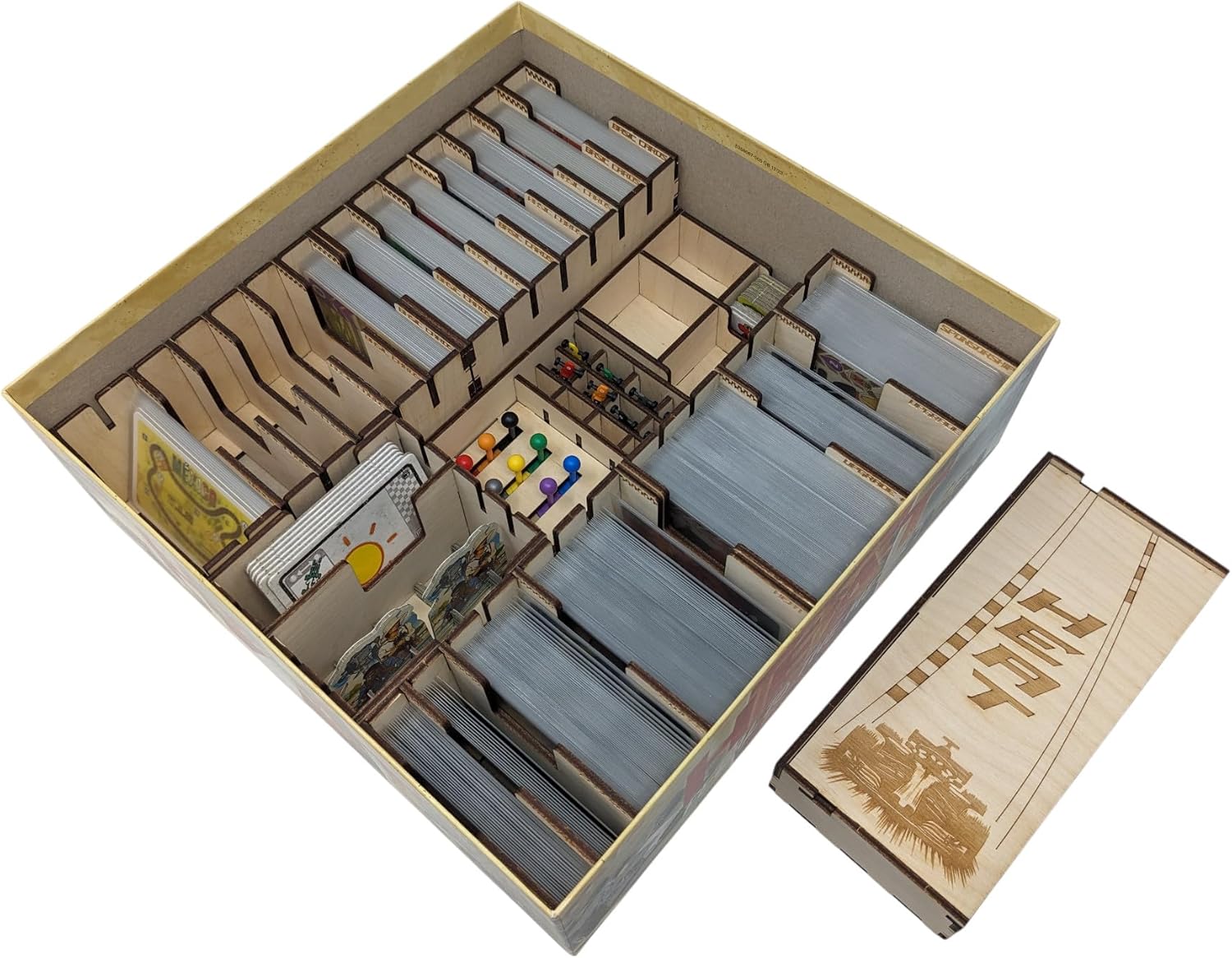 Keep your garage in order and your race day smooth with this custom Heat: Pedal to the Metal board game organizer. With dedicated trays for heat and stress cards, track modules, tokens, and more, this Heat insert makes setup and teardown fast and intuitive. Whether you’re running a solo time trial or a full championship, everything you need is right at your fingertips.