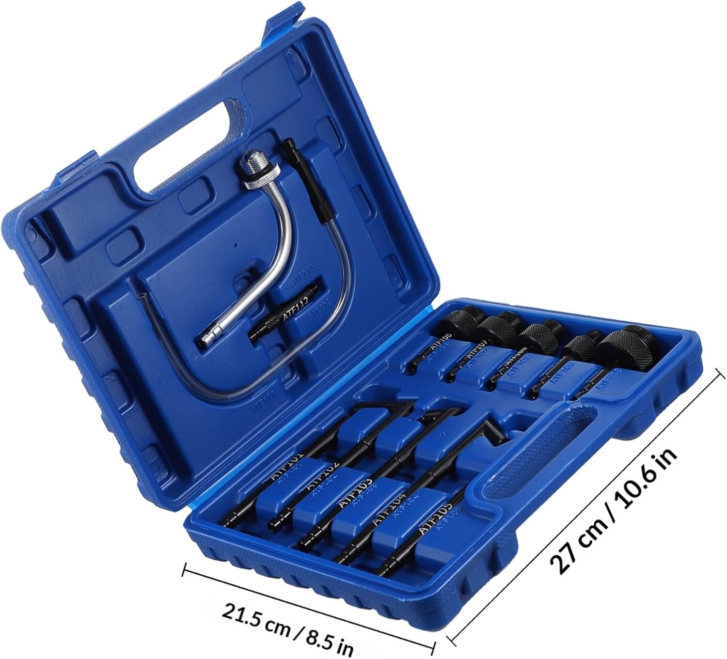 Package Include 1 set x oil fill adapters Features - Size: 27.00X21.50X6.00cm/10.61X8.45X2.36 inch. -Product Info:Transmission oil replacement machine - Color: As shown. - Material: Steel. - It is made of steel material, and the surface is plated and treated to prevent static electricity. - The quantity is enough to meet your daily needs, ergonomically designed, and easy to grasp transmission fluid adapter. - It includes a variety of adapters to meet your needs and is convenient and practical Steel Oil Refilling Adapter. - Equipped with a storage box, convenient for storage and transportation, it can be placed on the car, and also easy to carry metal transmission oil filling tool. - The surface is smooth, will not cause damage to the hand, wear-resistant, strong, and Oil Refilling Connector Tool.Goods Descriptiontransmission oil refill tool It will not break, the threaded interface is easy to seal and screw in, and it is suitable for most vehicle maintenance and filling operations.Steel Oil Fillers Adapter It can be placed in the trunk of the car and is a must-have for self-driving tours.transmission filling adapter High grade steel material, and wear-resistant, can be used many times.transmission refill tool kit It is also an gift for car enthusiasts.transmission filler adapter kit The joint of the dispenser is compact in size and takes up little space