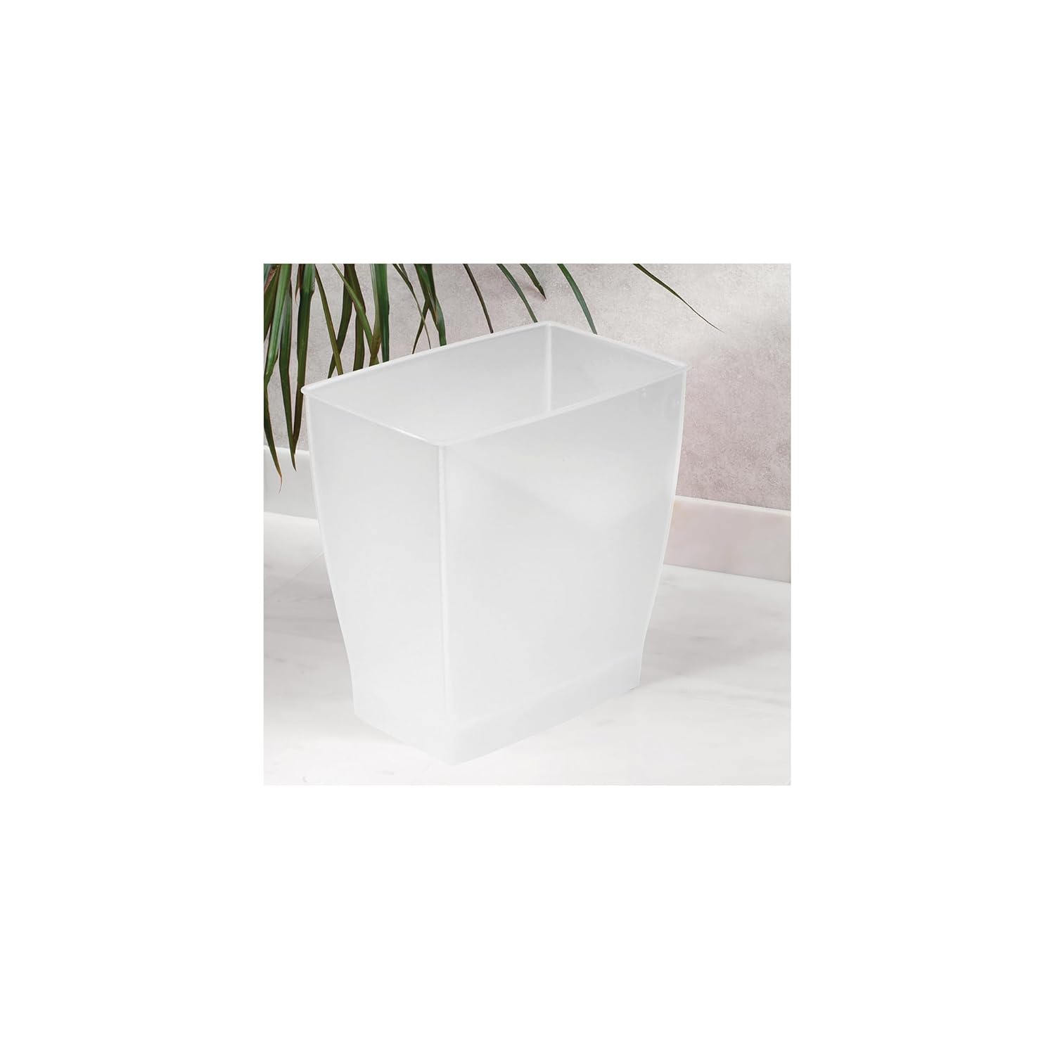 The iDesign Mono Trash Can combines style and function, making it ideal for small spaces like bathrooms, powder rooms, and home offices. The classic, rectangular shape is made from durable, shatter-resistant plastic to ensure longevity. Its small footprint can be positioned neatly below countertops, under desks, or inside cabinets, preventing clutter from accumulating on surfaces for a clean and organized space.