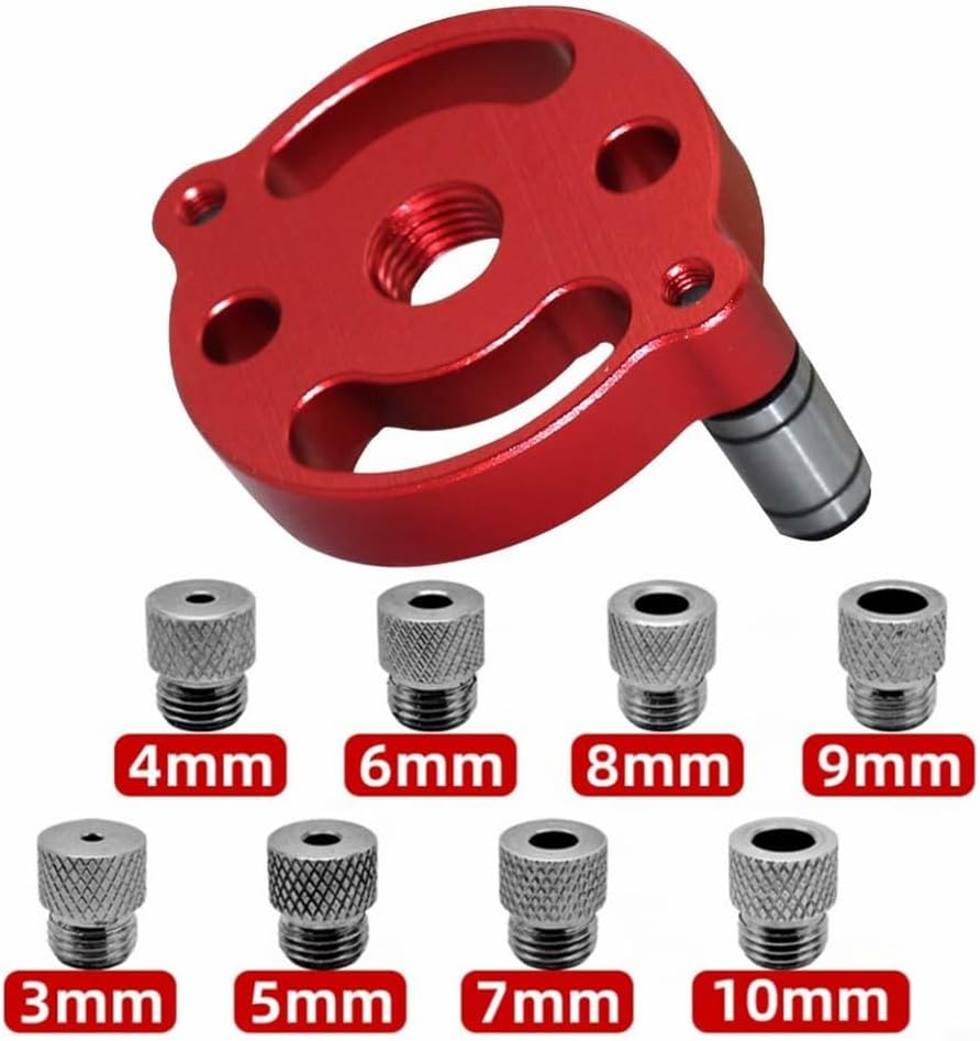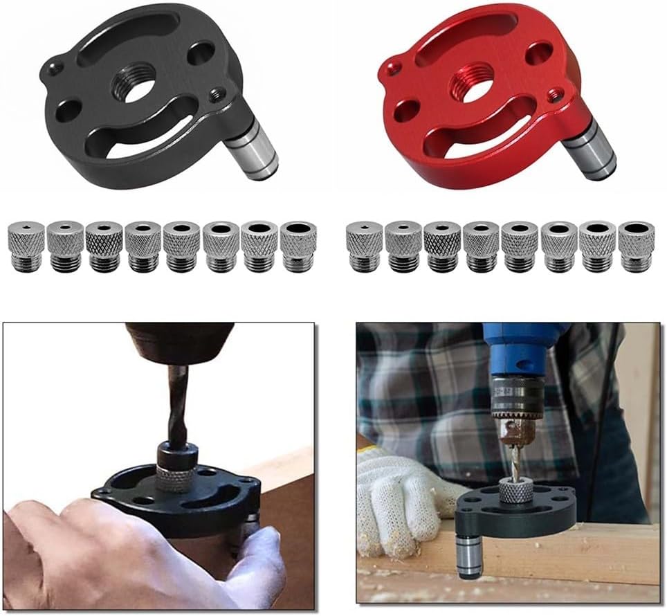 Product description Features:*Hand Drill Tools comes with 8 different sizes (3/4/5/6/7/8/9/10mm) Drill Bushings in the package, so that to easily drill holes of different sizes and meet various holing needs.*The two claws are convenient for quickly setting the center of the hole, and the maximum thickness of the hole is 65mm.*This Vertical Self Centering Pocket Hole Jig Made of Aluminum Alloy, strong strength and long durability. It is wear-resistant, rustproof, for solid, and excellent for use.*This is a set of drill guide tools for the fixation and centering while drilling and woodworking, great for fixing on all kinds of on board of different thickness.Specifications:Product name: Woodworking Drill Hole LocatorMaterial: Aluminum AlloyColor: Black, Red(Optional)Size: 3mm, 4mm, 5mm, 6mm, 7mm, 8mm, 9mm, 10mm(Drill Bushing)Suitable for: Drilling holes in wood or alloy, .Package Content: x Punch8 x Drill Bushing Manufacturer Contact Information no
