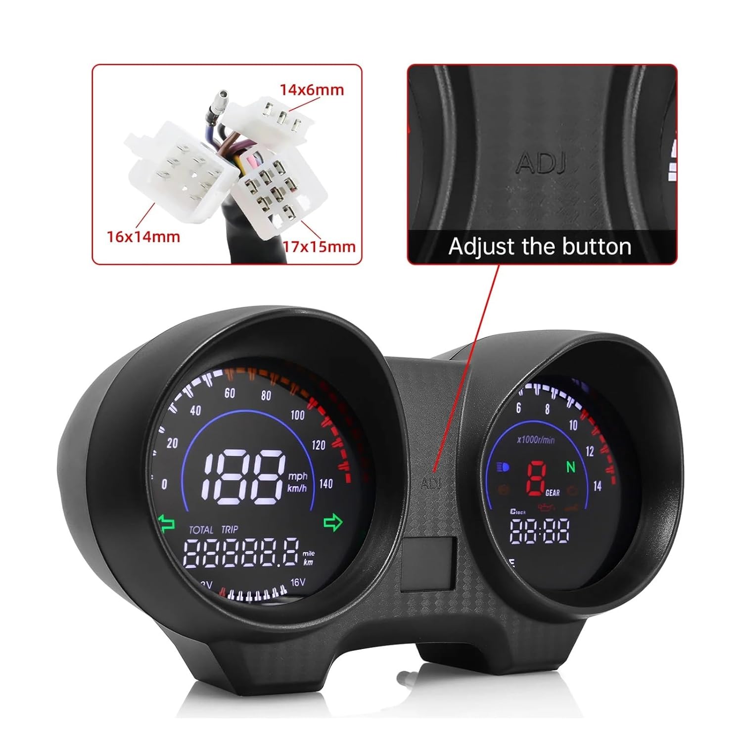 Digital Speedometer Dashboard Motorcycle RPM Meter Tachometer Oil Level Gauge Time Turn Signal For Brazil TITAN 150 FAN 150Package Includes:1 x Motorcycle SpeedometerFeatures : Digital tachometerMaterial Type : PlasticItem Diameter : 11cmItem Height : 10cmItem Width : 11cmItem Length : 22cmExternal Testing Certification : CCCModel Name : Motorcycle accessoriesIf you have any questions, please feel free to contact me.