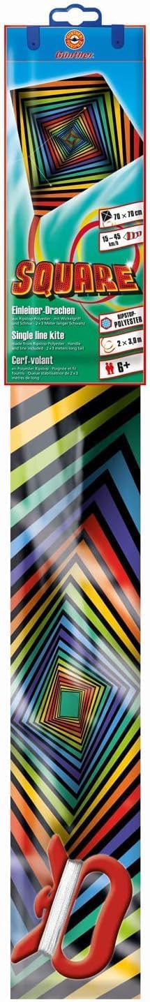 | Item Type Name | Paul Günther 1243 Children's Kite Square, Complete Ready to Flight, with Wrap Handle and Cord, Single Line Kite Made of Polyester for Children from 6 Years, Approx. 70 x 70 cm, 2 x 3 m Long Tail |