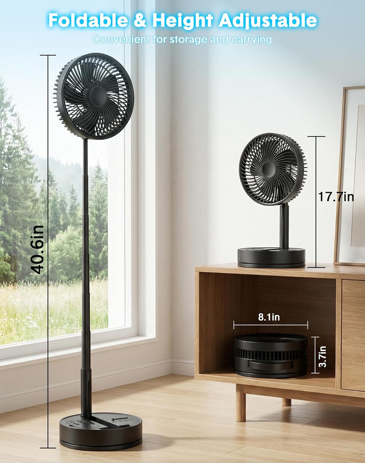 | Included Components | 8inch Foldable Rechargeable Oscillating Fan, Cord, Remote, User Manual |