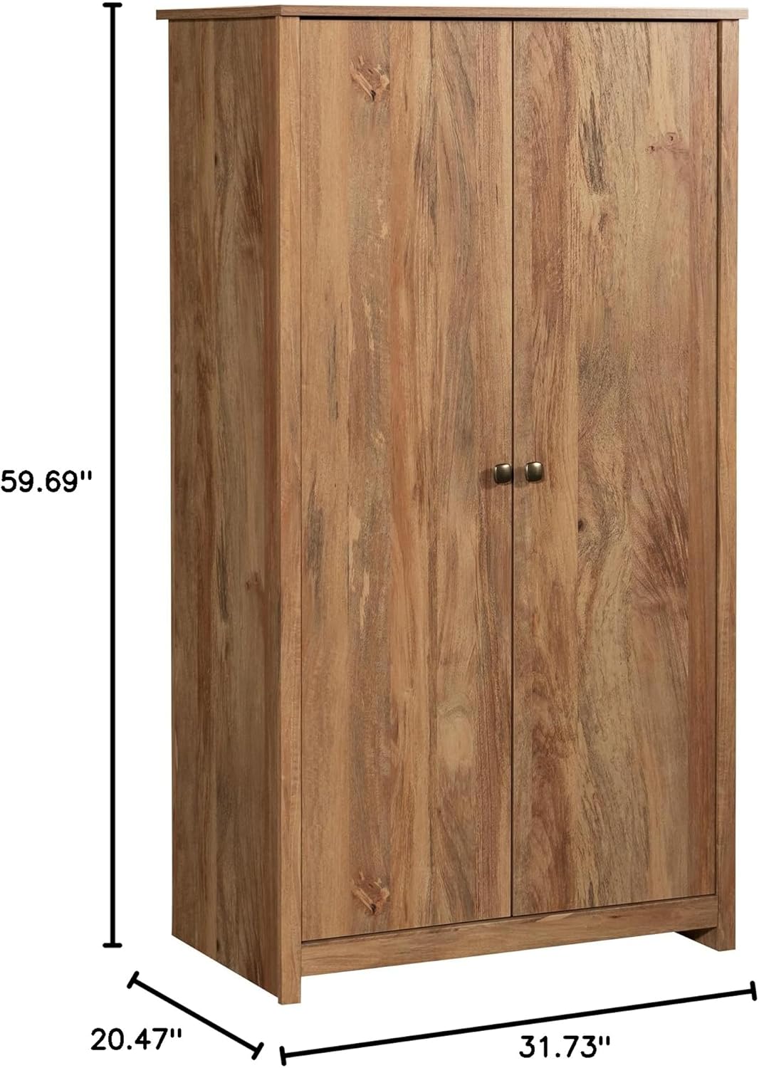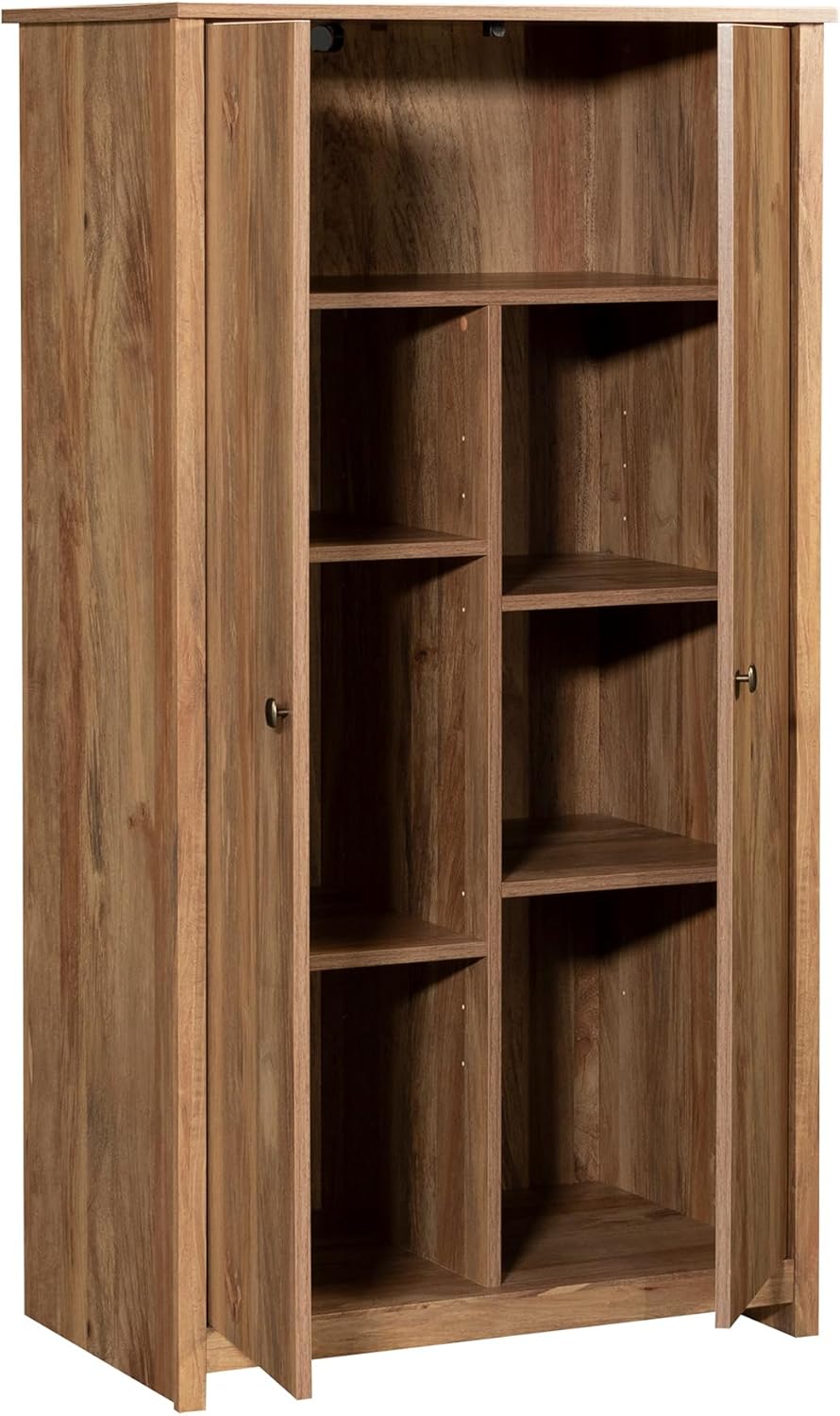 This two-door storage cabinet from the River Ranch® collection offers a classic farmhouse aesthetic that boasts modern functionality, so limited floor space doesn't mean sacrificing style. Behind its double doors is a spacious hidden storage area perfect for stashing books, craft supplies, board games, and more. Organize spaces large or small in a hurry with quick and easy assembly featuring slide-on moldings. This versatile double-door storage cabinet features four adjustable shelves, allowing easy storage of items of various sizes, from pantry essentials to office supplies to kitchen supplies and craft items. The full upper shelf of this storage cabinet with doors provides even more room for large, bulky items. The strong and spacious construction of this living room storage furniture makes this piece a welcomed addition nearly anywhere around the home or in the garage. With the warm, rustic woodgrain of a Sindoori Mango® finish, this storage cabinet seamlessly blends style and functionality, enhancing any room's décor.