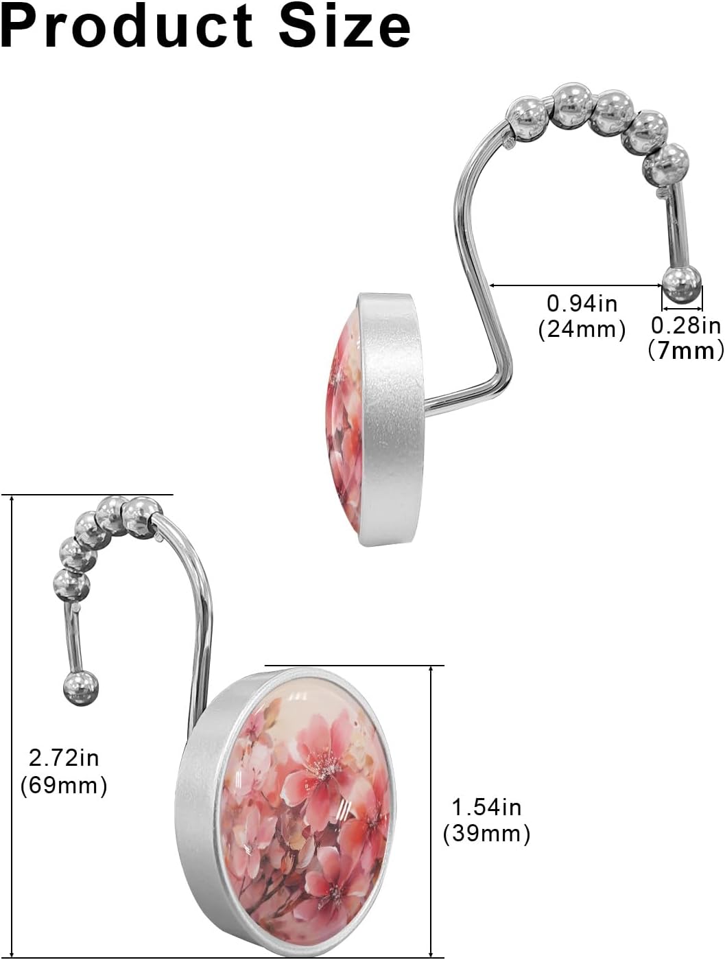 12PCS/SET Shower Curtain Hooks for Bathroom, Decorative Shower Curtain Hooks with beautiful and unique looking! Our shower curtain hooks come in many patterns, such as: geometric, vintage, ocean, gnome, sunflower, animal, plant, floral, plaid, cartoon, space, summer, autumn, winter, spring, Christmas theme, Easter theme, etc. Whether it's a modern or vintage bathroom, apartment or farmhouse bathroom, find the matching style in our store. Stainless Steel Rust Proof Shower Hooks for Bathroom Curtains Our Shower Curtain Hooks are made of 304 stainless steel and with plating surface, with 5 glide Balls, round crystal glass with resin peripheral design, they can roll easily back-and-forth across the shower rod, not stick and smooth roll. Rust-resistant, Not Easy to Fade, Strong and Stylish.These qualities save you the hassle of frequently buying shower curtain hooks, and trust us, you won't be disappointed when you replace the plastic hooks. Package Contents: Set of 12 Shower Curtain Hangers, comes in a transparent box packaging make sure with no missing parts. These bathroom shower curtain hangers are suitable for hanging rods up to 0.94" / 24mm in diameter. If you receive any defective products, please feel free to contact us. We will send you a replacement or refund immediately.