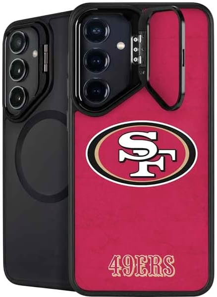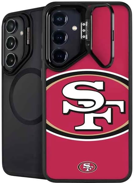 The NFL San Franciso 49ers Black & White Kickstand Case compatible with Galaxy S25 Plus is the ultimate in versatile protection and convenience. Featuring an innovative lifted camera ring with a built-in stand, it allows hands-free video watching with adjustable angles from 0 to 150 degrees. This premium San Francisco 49ers Case supports wireless charging and is fully compatible with MagSafe, offering a sleek design without compromising on durability or functionality.