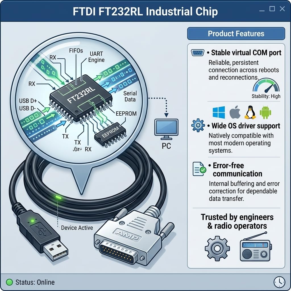 | Compatible Devices | USB Male to DB25 Male RS232 Cable |