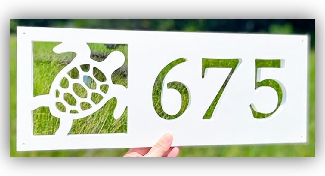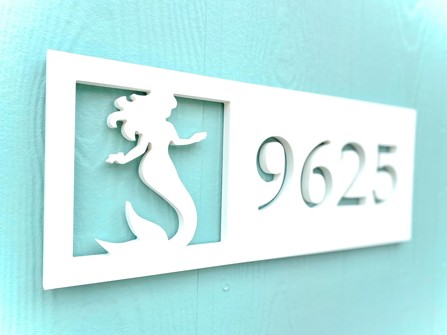 This horizontal Mermaid Address Sign is personalized with up to 5 characters of your choice. It's made using premium 1/2" thick PVC, which makes it 100% weatherproof and durable for outdoor use. We hand make our products to the highest standards, resulting in an exceptional quality product that will last for many years to come. Our coastal themed products will add gorgeous beach vibes to your home, and won't rot, crack or yellow over time (even in the harshest conditions, like Florida sunshine, rain showers & salt air!). Visit our Amazon Handmade Storefront to view more coastal designs and vertical formats.