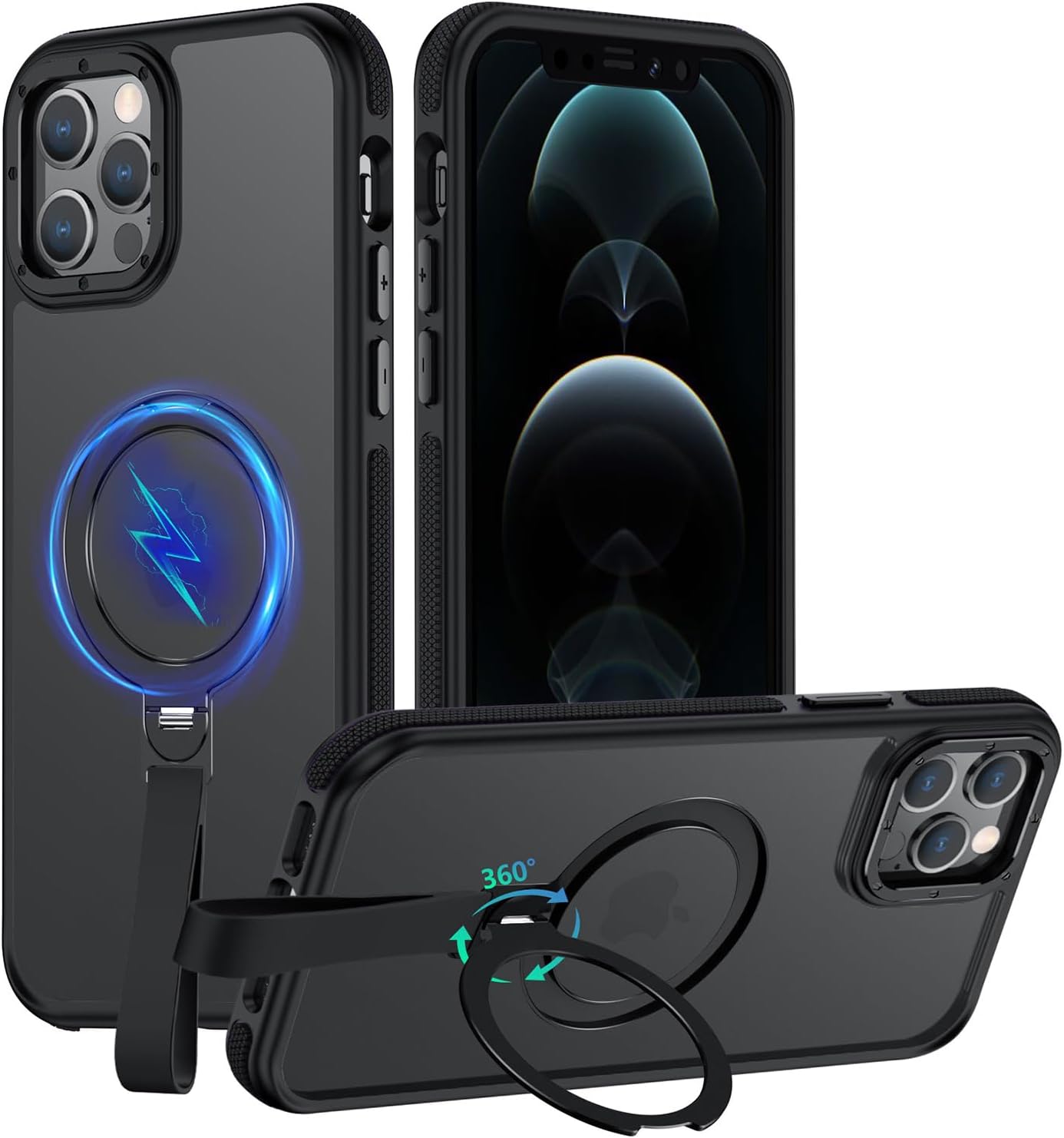 • 【Compatibility & All-in-One Innovation】: Only Compatible with iPhone 12/12 Pro. The Phone 12/12 Pro case is a uniquely innovative and multifunctional phone case that integrates a 360° Spin stand, Silicone Finger Strap, ring holder, magnetic partner, wireless charging, and military-grade protection into one perfect design