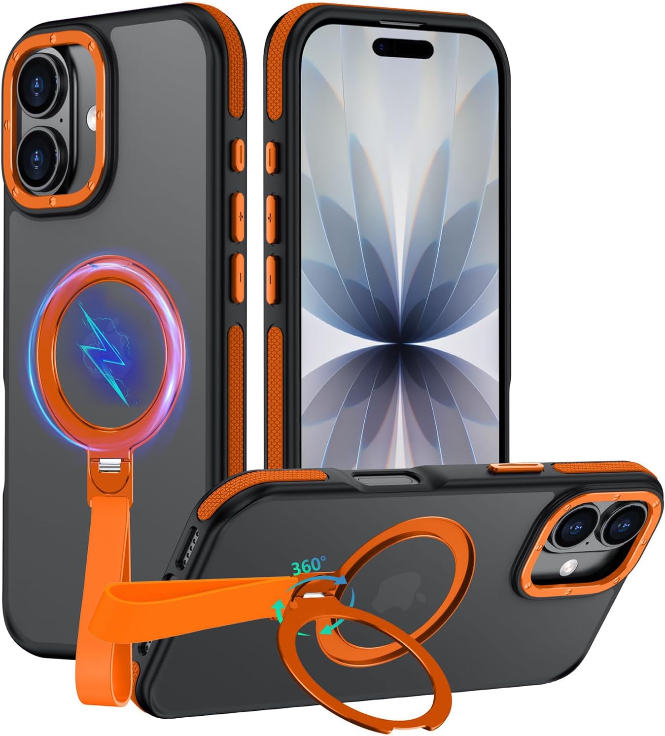 • 【Built-in Magnetic Phone Grip Holder Kickstand with Silicone Strap】: You can hold your device while taking selfies, scrolling through social media, or doing a video call; It is easy to operate your phone with one hand, avoiding phone drops and screen cracks. The integrated silicone strap lets you securely tote your phone, freeing up your hands for shopping bags, groceries, or your morning coffee. A pocket isn't a necessity. Unlock One-Handed Convenience. Effortless Carrying, Total Freedom