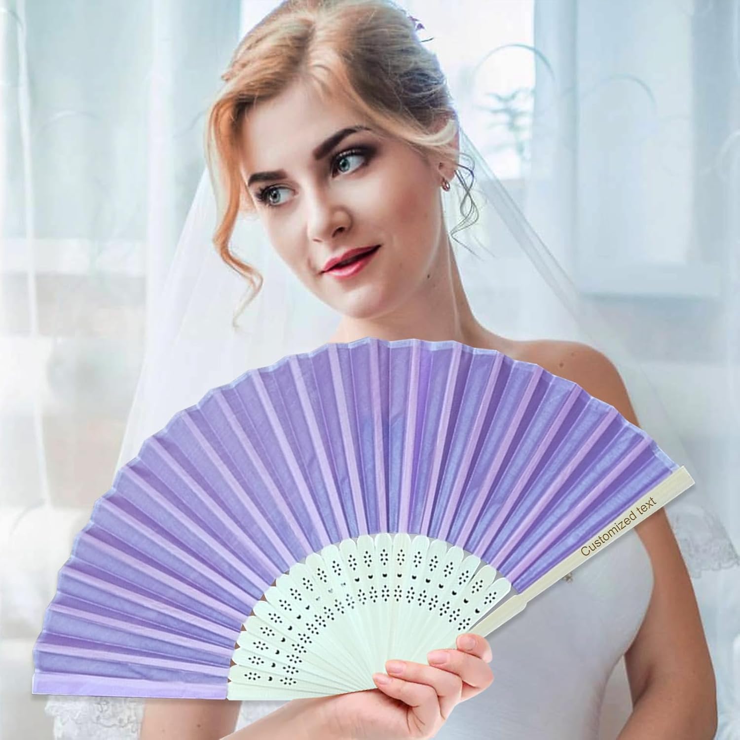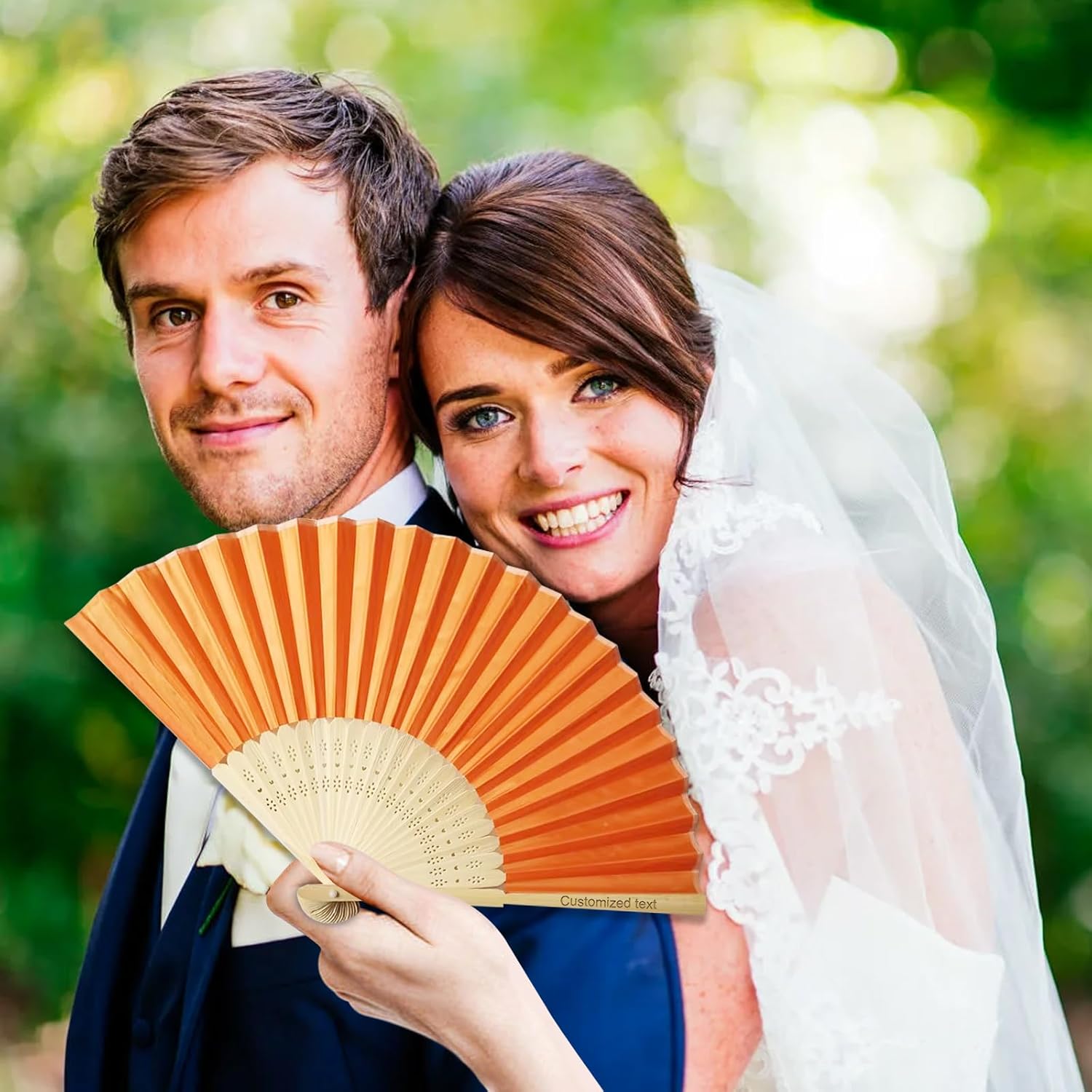 Exquisite Personalized Folding Hand Fans – Custom Luxury for Every OccasionPersonalize your wedding fans with laser-engraved names, dates, quotes, or custom designs using 20 artistic fonts.Measuring 8.26 inches (21cm) when closed and 14.37 inches (36.5cm) wide when opened, they are lightweight, portable, and designed with intricate hollow-out patterns for a perfect blend of tradition and modernity.Subtle color variations and organic textures highlight their artisanal charm, while the foldable design guarantees easy storage and on-the-go comfort.Perfect for weddings, garden parties, beach events, cultural celebrations, or everyday elegance. Let these handcrafted fans cool your guests while leaving a lasting impression of sophistication and thoughtfulness.