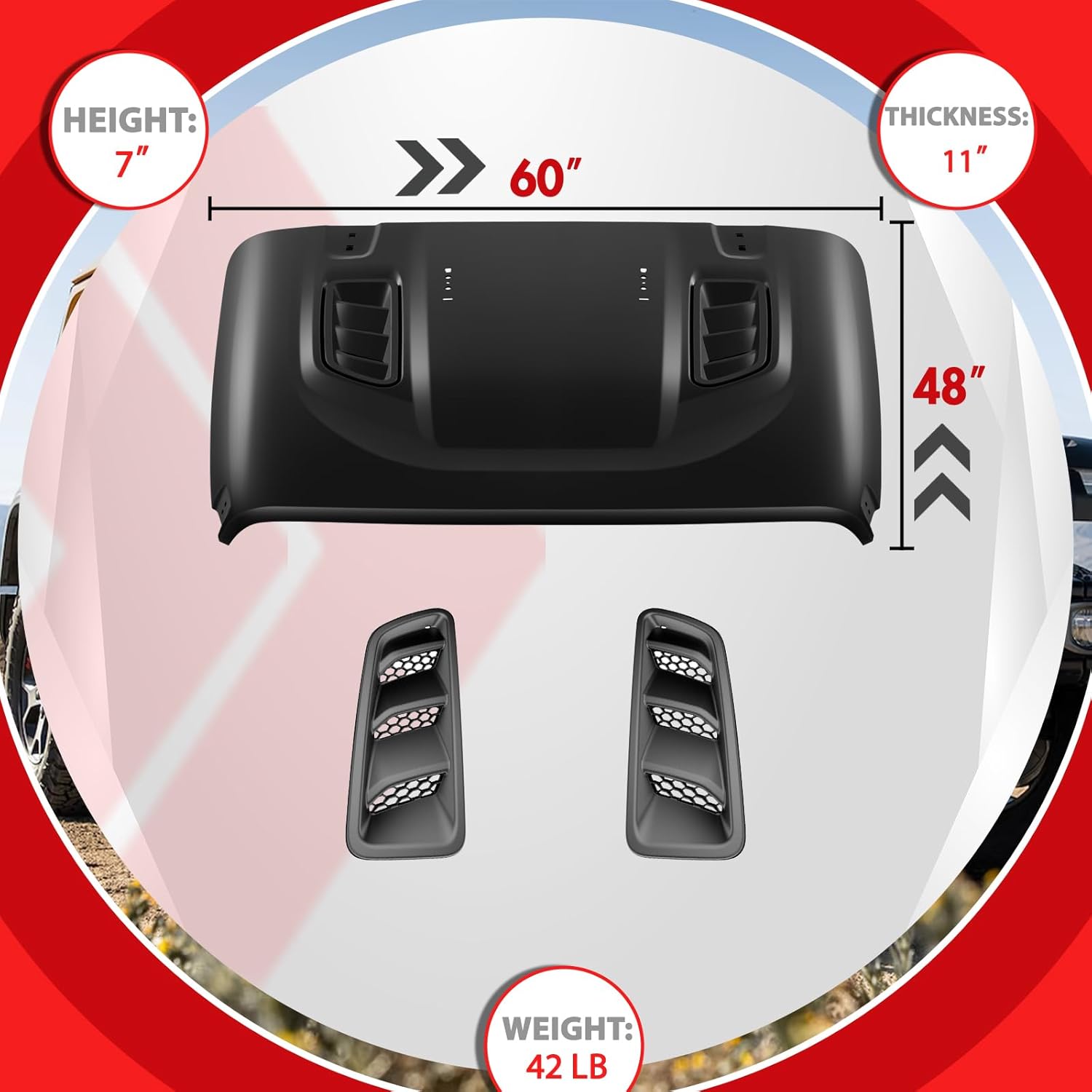 | Included Components | 10th Anniversary hood JL X 1, 3M glue X 1, Heat vents X 2 |