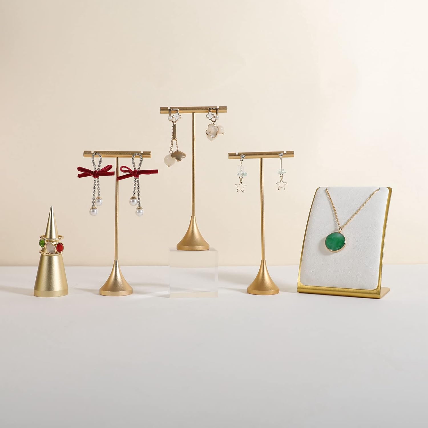 ✔GemeShou Earring Display Stand-Short version: 3pcs of same height, aluminum alloy, surface oxidation treatment into gold color. Cone shape Base diameter is 1.18"(3cm); Length of horizontal bar is 2.4"(6cm); Height is 5.12"(13cm), same for all three. 1 pc includes three parts: base, vertical bar, horizontal bar, it's very easy to screw them together. Please check images for detailed dimensions. Jewelry and other photography props are not included. ✔Click “Add to Cart” now to take a try! ✔All the product shows in pictures are for sell (except jewelries) in our Amazon store, please search "GemeShou" to get more options.