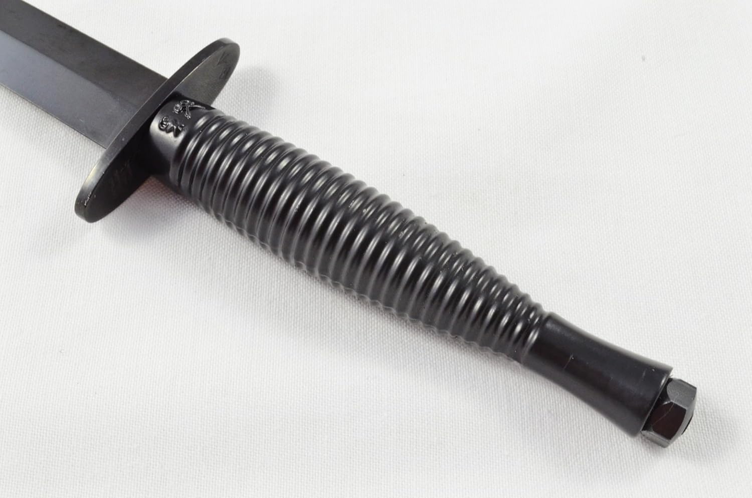 Own the most battle-tested and iconic of all Commando knives: the Third Pattern Fairbairn-Sykes, the trusted companion of British Special Forces throughout World War II and beyond. This is the definitive combat knife—steeped in history, hand-forged in Sheffield, and engineered for elite performance. Our Type 3 model is the culmination of war-forged design, refined for practicality and efficiency. It features the classic ringed grip handle for enhanced control and a matte blackened blade—stealthy, functional, and historically accurate. This model has stood the test of time, serving British Commandos and Special Forces since 1942. Specifications: Length: 30.5cm Weight: 250g Blade Finish: Tactical Blackened Handle: Ringed Grip for Optimal Hold Sheath: Black Leather Designed as a piercing weapon—not a slicing blade—this knife mirrors its original wartime function, maintaining a strong edge profile without requiring sharpening. Whether you’re a collector, reenactor, or military enthusiast, this Third Pattern Commando Knife represents the pinnacle of Sheffield steelwork and British combat heritage. Our best-selling model. Limited production. High demand. Don’t miss your chance to own a piece of elite history.