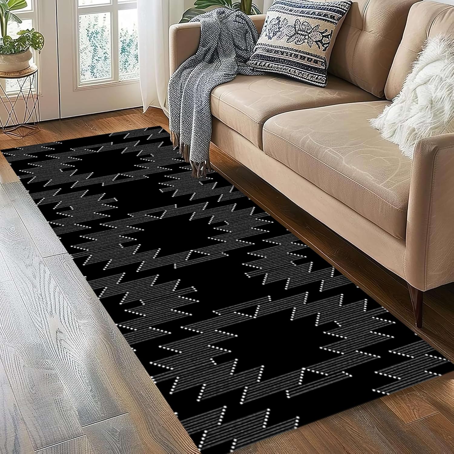 Embrace timeless elegance with this aztec addition to your flooring collection!Features:--Featuring a stunning blend of intricate geometric patterns and vibrant colors, this western rug captures the essence of southwestern design, making it a perfect addition to your western decor.--The pattern on this ethnic rug is created using high-quality printing technology that is not only eye-catching but also clearly visible, ensuring that the vibrant pattern will stand out in any room.--The non-slip rubber backing of this native american rug provides security and stability, making it perfect for high-traffic areas of your home.--This versatile floor mat fits seamlessly into various spaces, whether it's your living room, bedroom, or even dining area, and is pet-friendly, allowing your furry friends to enjoy comfort without compromising on style.--Perfect for those who appreciate vintage style, tribal designs, or a farmhouse aesthetic, this geometric rug will complement any decor style.--Transform your home with this eye-catching moroccan rug—a perfect blend of durability, ease of maintenance, and unmatched style. Size:1.3'x7'/16""x84""2'x6'/24""x72""2'x7'/24""x84""2'x8'/24""x96""2'x10'/24""x120""2.6'x7'/31""x84""2.6'x10'/31""x120""3.3'x7'/40""x84""3.3'x10'/40""x120""4'x10'/48""x120""4'x12'/48""x144""Kind Tips:1. To facilitate transportation, the carpet is folded and packaged and will have slight creases when it arrives, please allow time for the creases to flatten out.2. Due to different shooting angles and light factors, the actual color may be slightly different from the picture, please refer to the actual product.3. When using a rug, always place it fully unfolded on a flat, dry surface. Water getting under the rug could cause a slip.