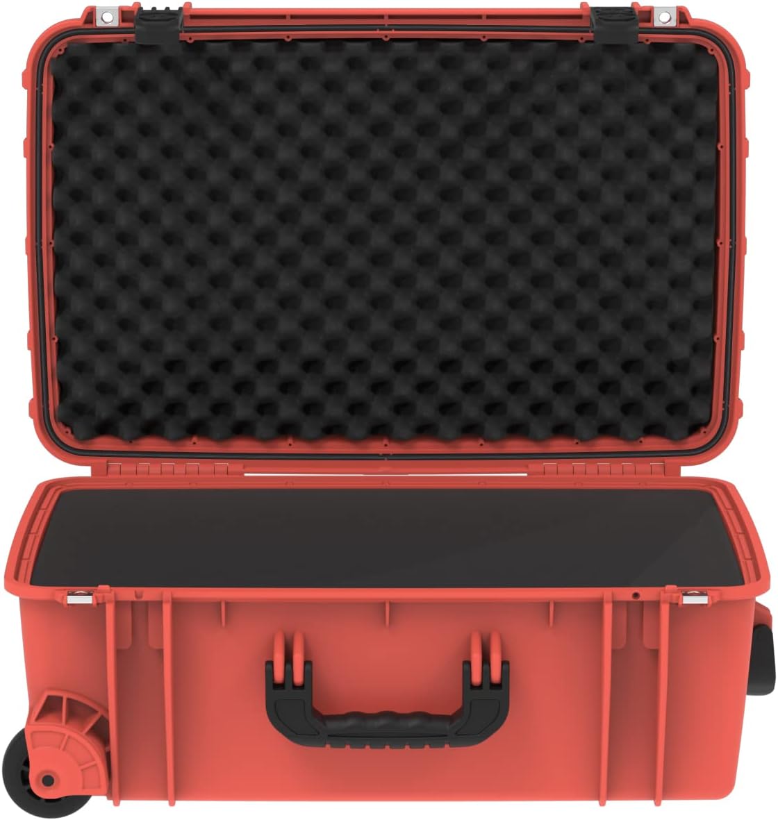 Product Description Seahorse Exterior Dimensions: 24.3" x 16.0" x 10.10" - Interior Dimensions: 22.12" x 13.54" x 8.50". Case weight: 14.23 lbs. Dustproof, Airtight & Watertight Protection (Mil. Std. 810F, 512.4 & IP67). Capable of withstanding water immersion between 15cm and 1 meter for 30 minutes Customize your internal space to fit snugly around your items with the included dual layer of pre-scored Accuform Foam. Includes non-corrosive keyed plastic locks, wide track wheels and built-in telescoping tote handle for easy rolling Proudly Made in America with Lifetime Guarantee From the Manufacturer Seahorse SE920 Protective Wheeled Case with Foam and Keyed Plastic Locks (Black)