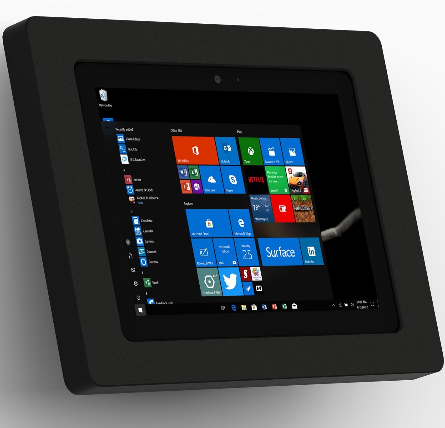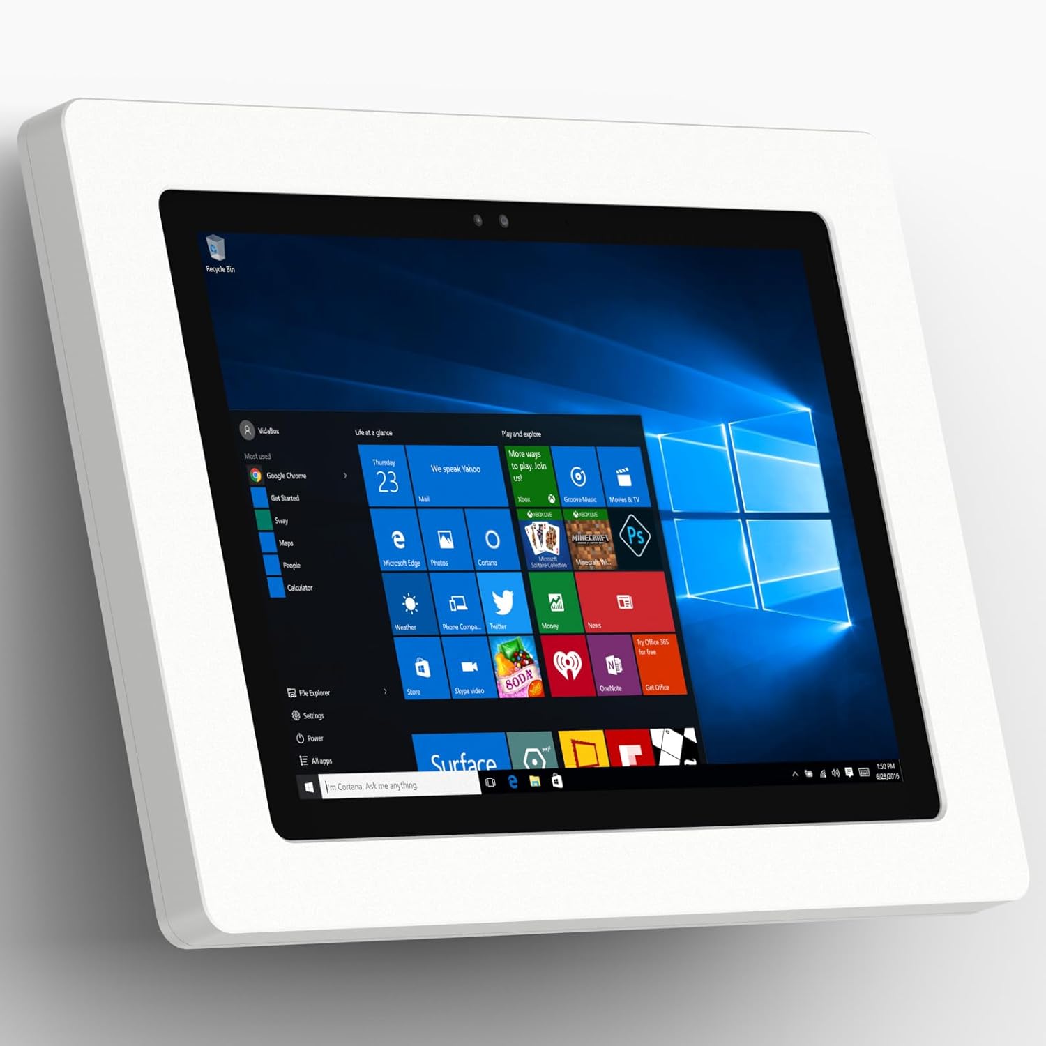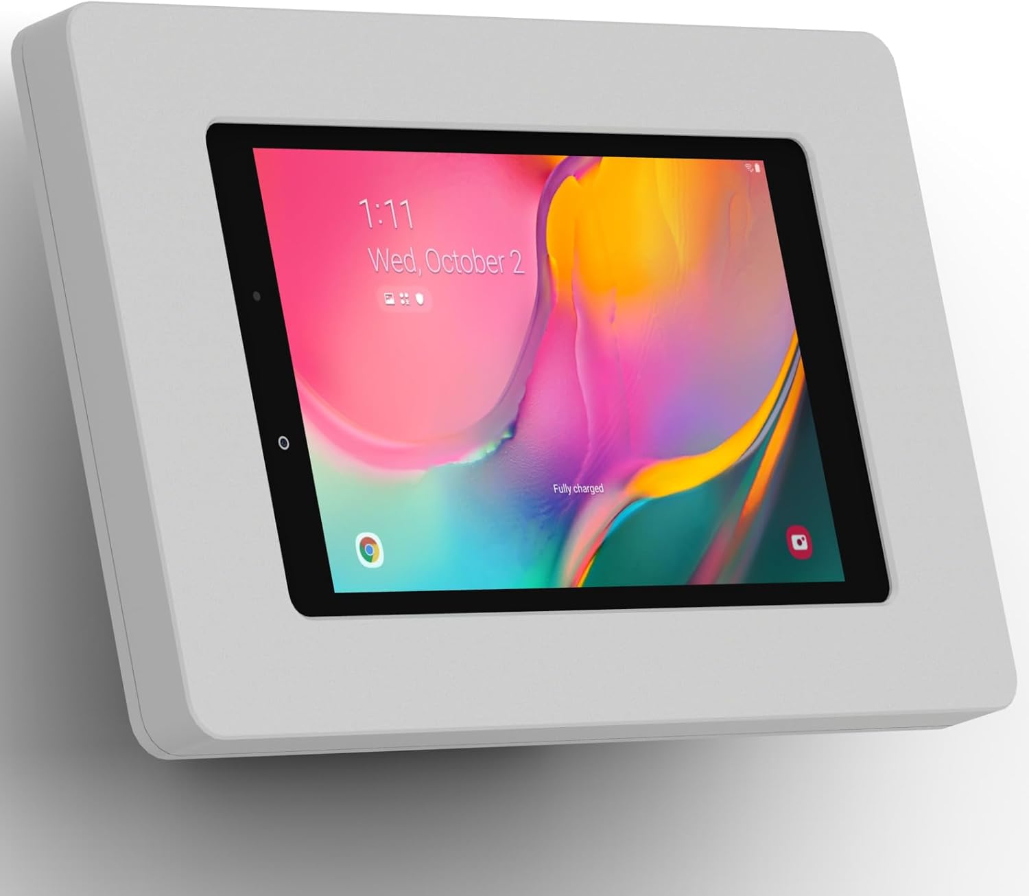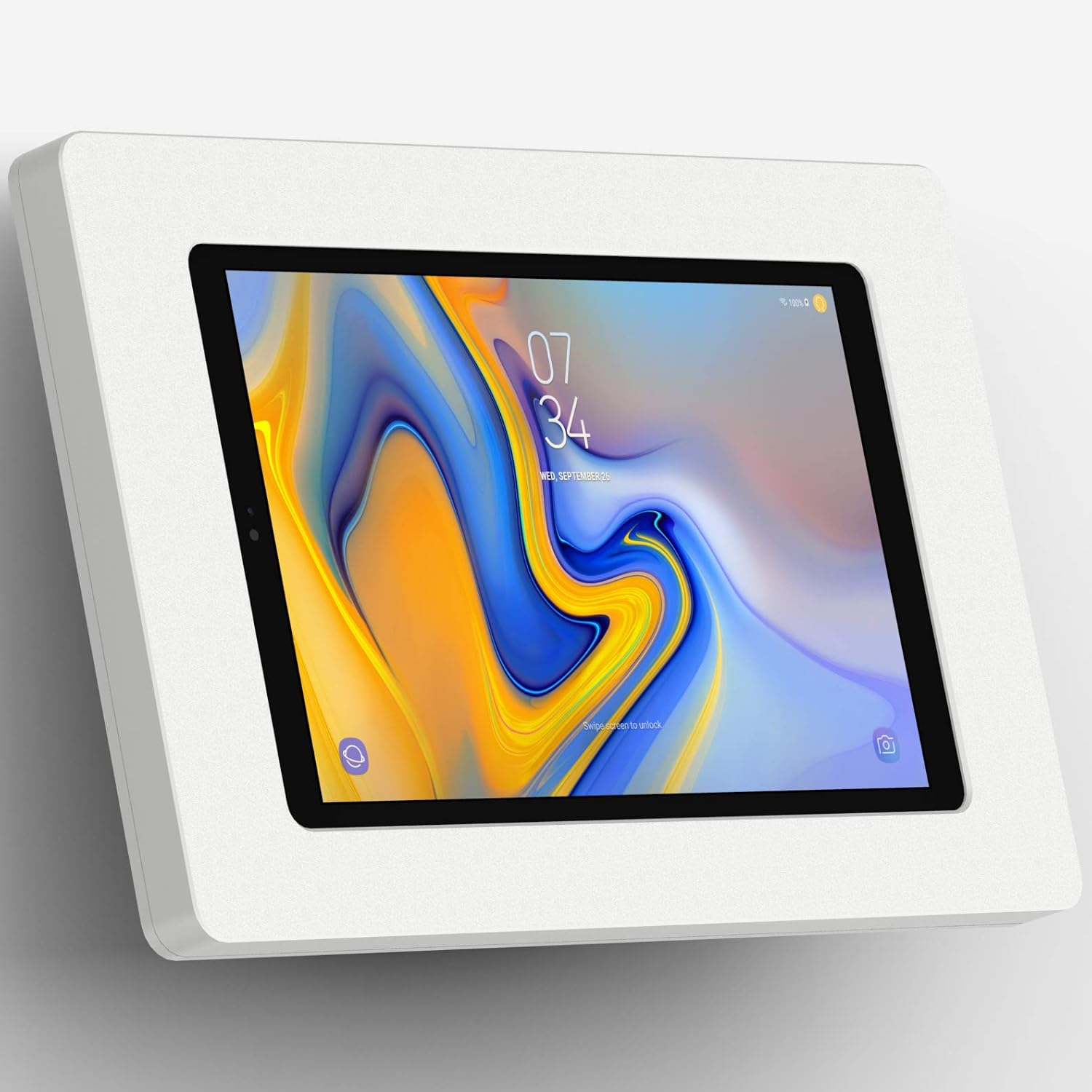 15° Fixed Tilted Wall MountThe 15° Fixed Tilted Wall Mount is at the optimal angle for kiosk engagement. When mounted to a wall, the tilt allows customers, clients and people to have a comfortable angle for ease of use.Tablet EnclosureOur VidaMount VESA Tablet Enclosures are engineered like no other enclosure on the market today. With attention to details like a mic hole, speaker grill, interior pads for tablet protection, and a power button service knockout. Our enclosure fully wraps your Tablet for the ultimate in protection and theft preventionAn Impressively Versatile ComboThe kiosks mounting options allow it to be installed to an already existing single or double gang box, or directly onto drywall. Furthermore we can install this kiosk on top of a decora style electrical outlet - no need to run new power connections to the tablet. The power components that natively come with the tablet, can be plugged in and comfortably tucked inside the mounts chamber. All of this making for a clean looking and efficient kiosk. This Tablet Kiosk has many options - truly one of the most versatile wall mounting kiosks we've ever had.Cable ManagementWe thought of everything, from fitting your Lightning power cables, to a perfectly sized opening for your 3.5mm headphone jack and cord, our enclosure was designed to fit your needs. All cables are fed into the hollow center chamber, for the ultimate in clean looksWhat's in the box(1) Fixed Tilted VESA Wall / Surface Mount - 15°(1) VidaMount VESA Tablet EnclosureComplete wall mounting screw kit